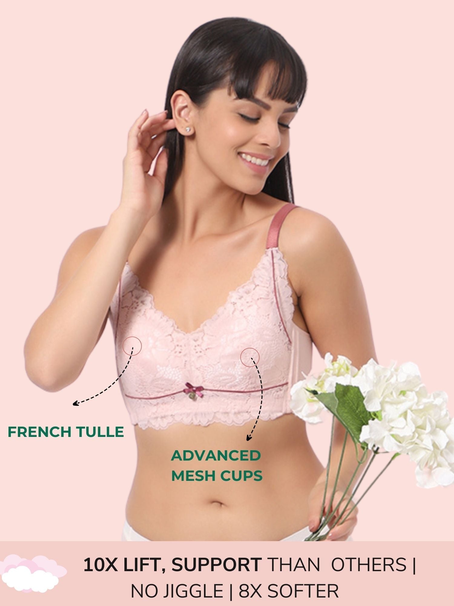 - 💛 Crafted for bustier goddesses who deserve both comfort and confidence—this wireless lace bra wraps you in lightweight lift, softness, and breathable beauty.